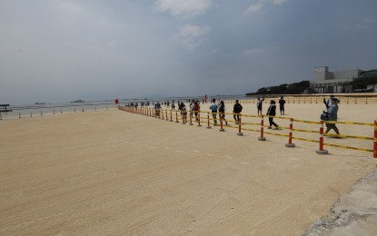 As people flocked to the newly opened Manila Bay "white sand beach," the Department of Tourism (DOT) reminded the public to follow all safety and health protocols to prevent the spread of coronavirus disease (Covid-19) while appreciating the beach nourishment project. View