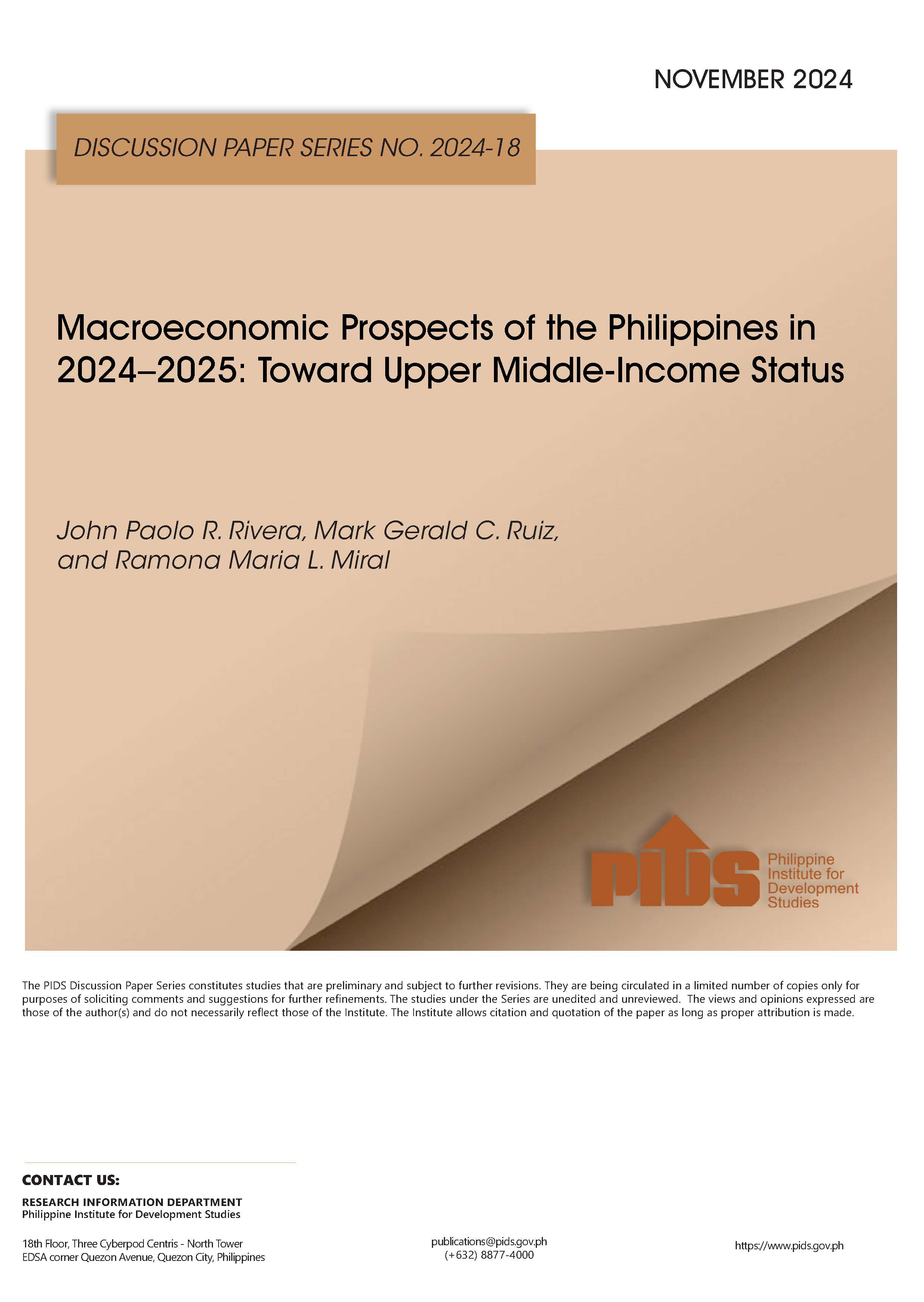 Macroeconomic Prospects of the Philippines in 2024-2025: Toward Upper Middle-Income Status